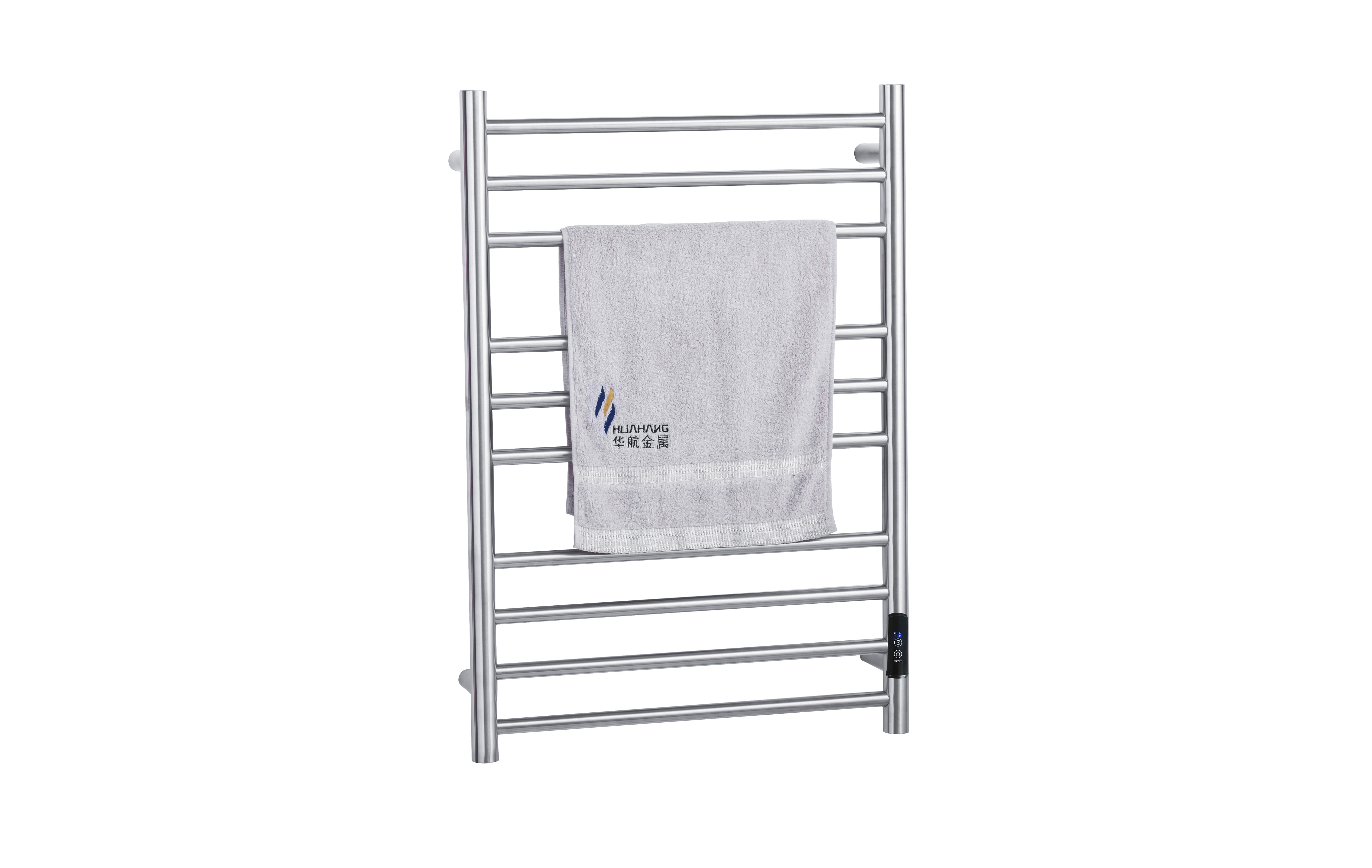 10桿時(shí)控開關(guān)電熱毛巾架 10 bar time switch heated towel rail 材質(zhì)Material:SS201/SS304 功率Power:220V/95W 表面Surface:Mirror Polished 鏡面拋光 尺寸Size:540*110*780mm 包裝Ctn size:560*60*810mm