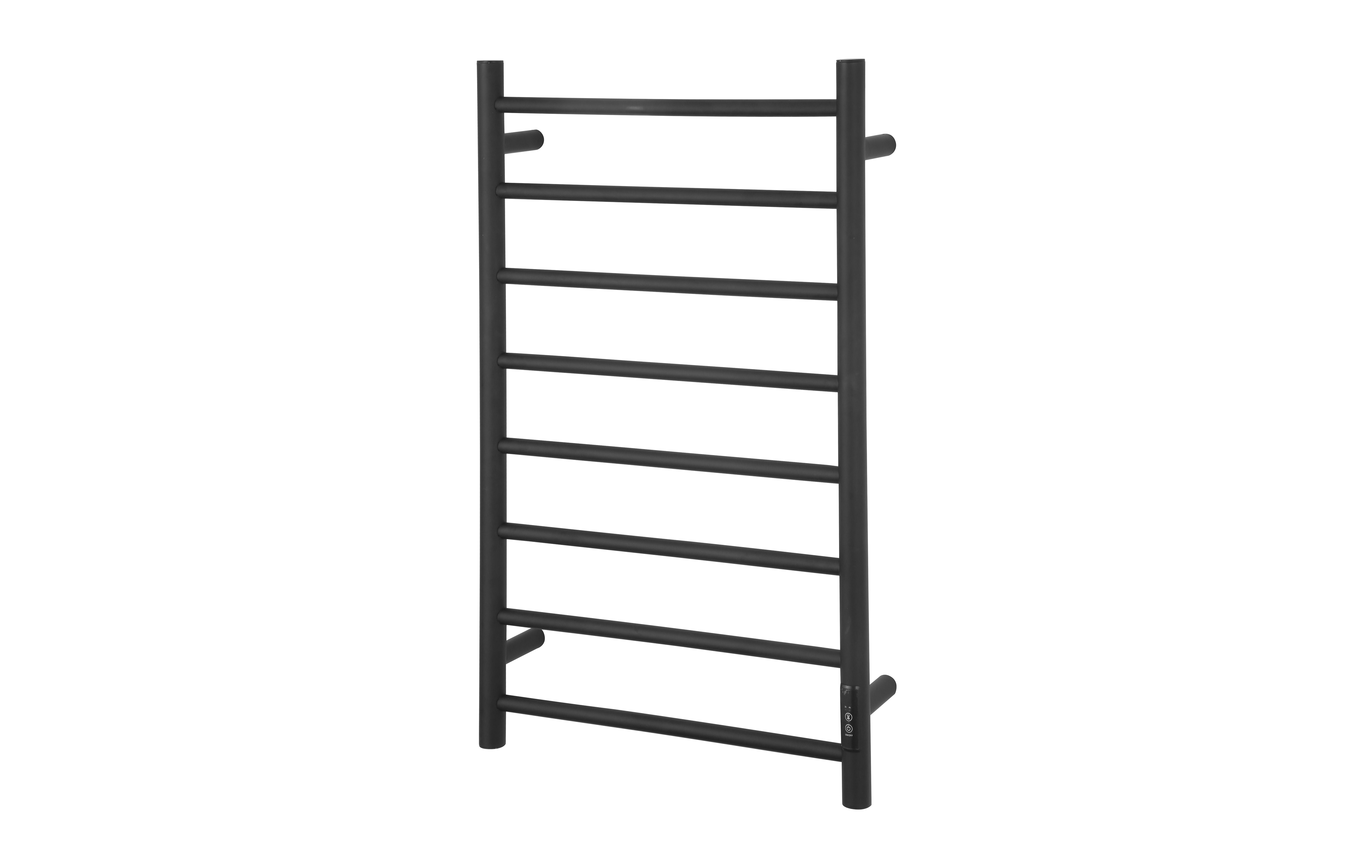 8桿時(shí)控開(kāi)關(guān)電熱毛巾架 8 bar time switch heated towel rail 材質(zhì)Material:SS201/SS304 功率Power:220V/120W 表面Surface:Black Painted 黑色噴塑 尺寸Size:500*110*800mm 包裝Ctn size:520*60*830mm