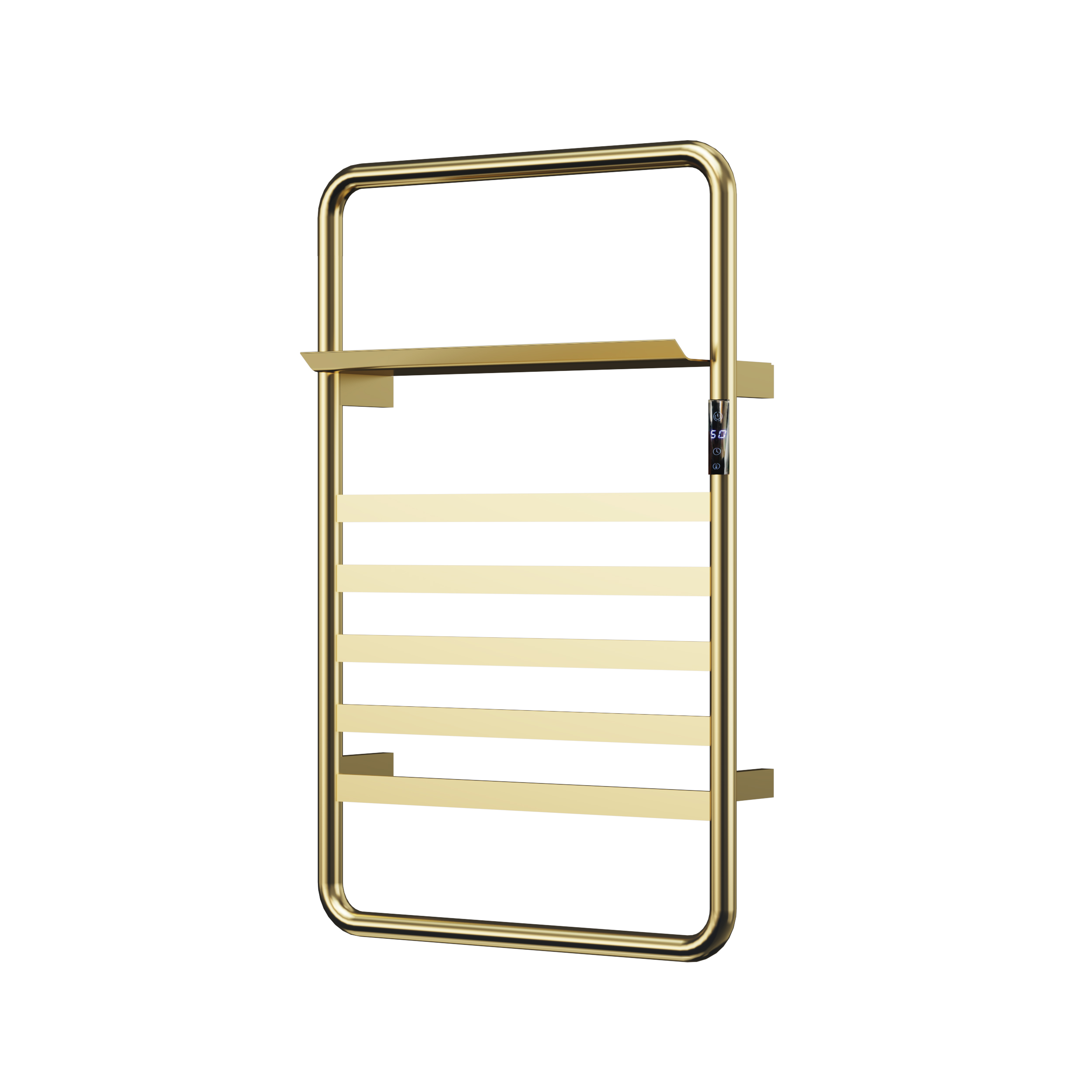 7桿時控開關電熱毛巾架 7 bar time switch heated towel rail 材質Material:SS201/SS304 功率Power:220V/120W 表面Surface:Gold 金色 尺寸Size:540*180*832mm 包裝Ctn size:560*60*855mm
